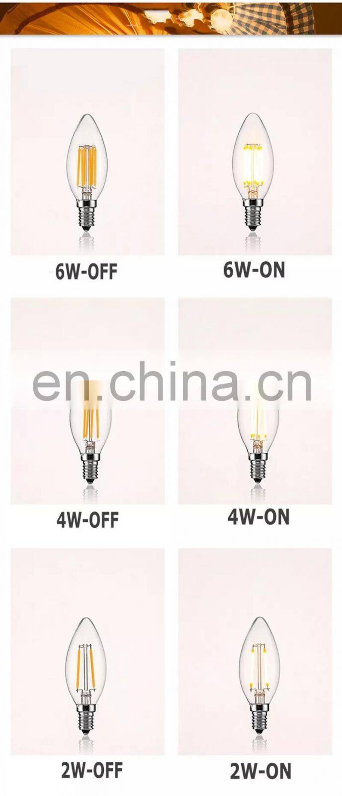 Home > Products > Ungrouped > C35 L35 E14 LED Light Bulb AC220/240V 4W 6W Filament Candle Light Edison Bulb Retro Antique Vintage Carbon Filament Light Bulbs