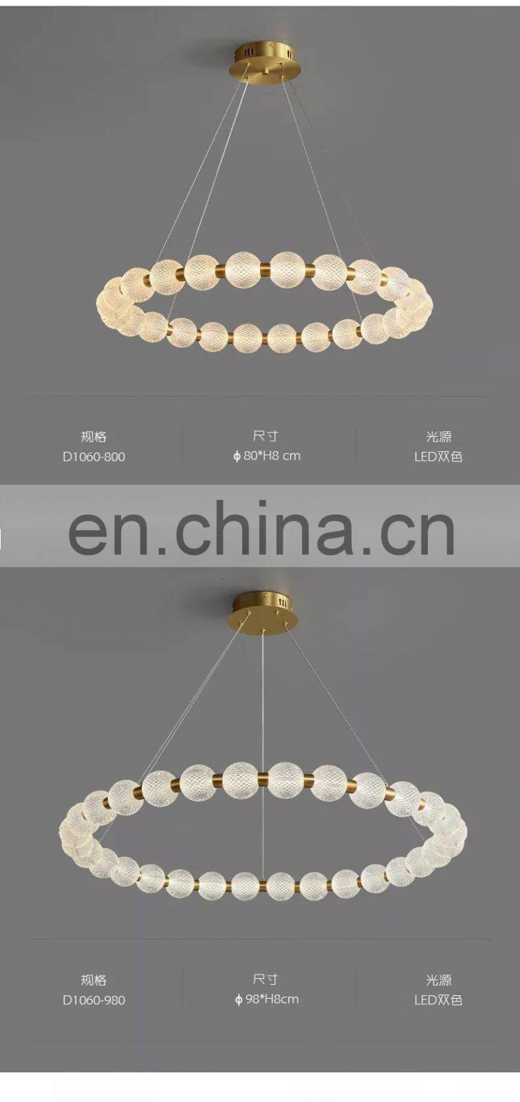 Nordic Pendant Lamp Copper And Acrylic Ball Chandeliers Light Indoor Bedroom Metal Hanging Light