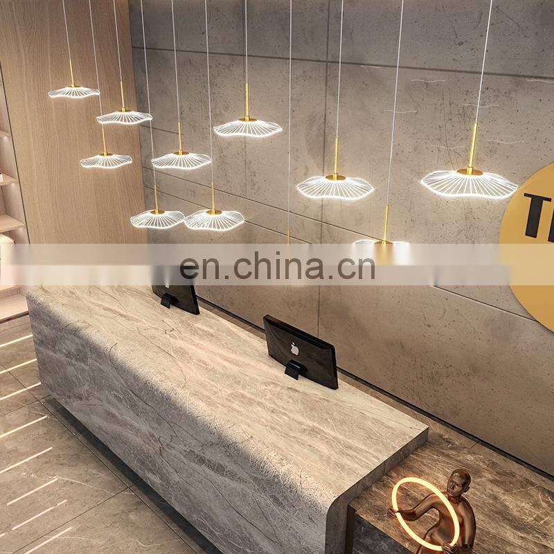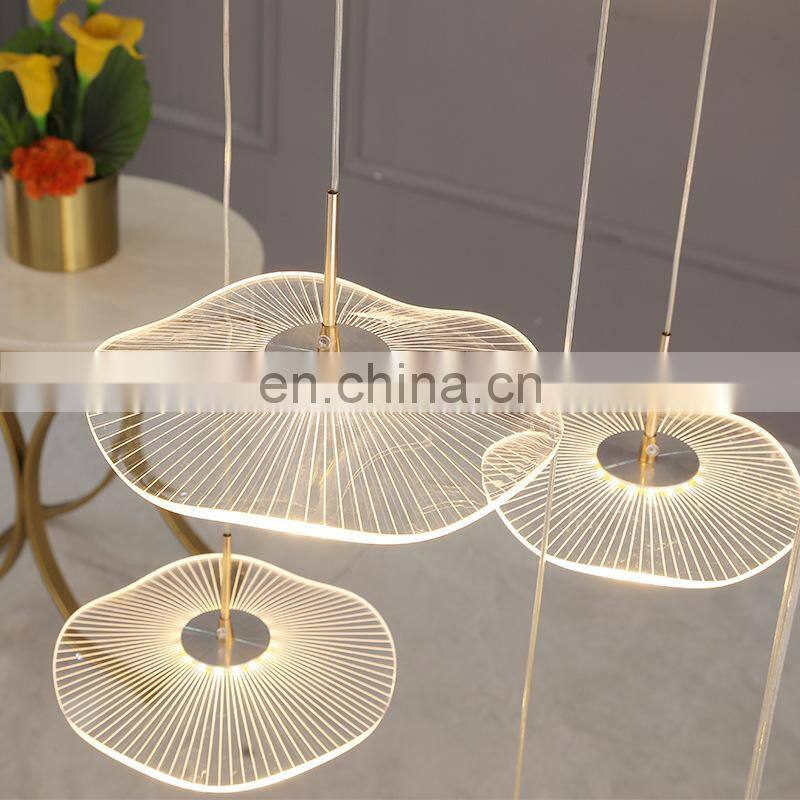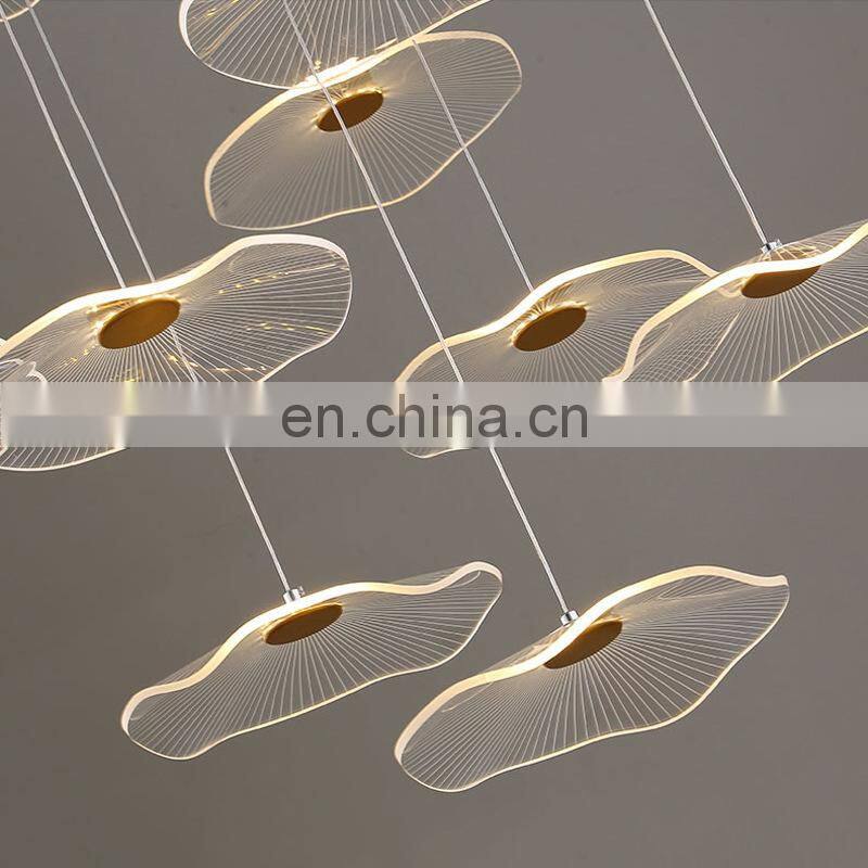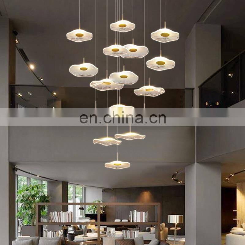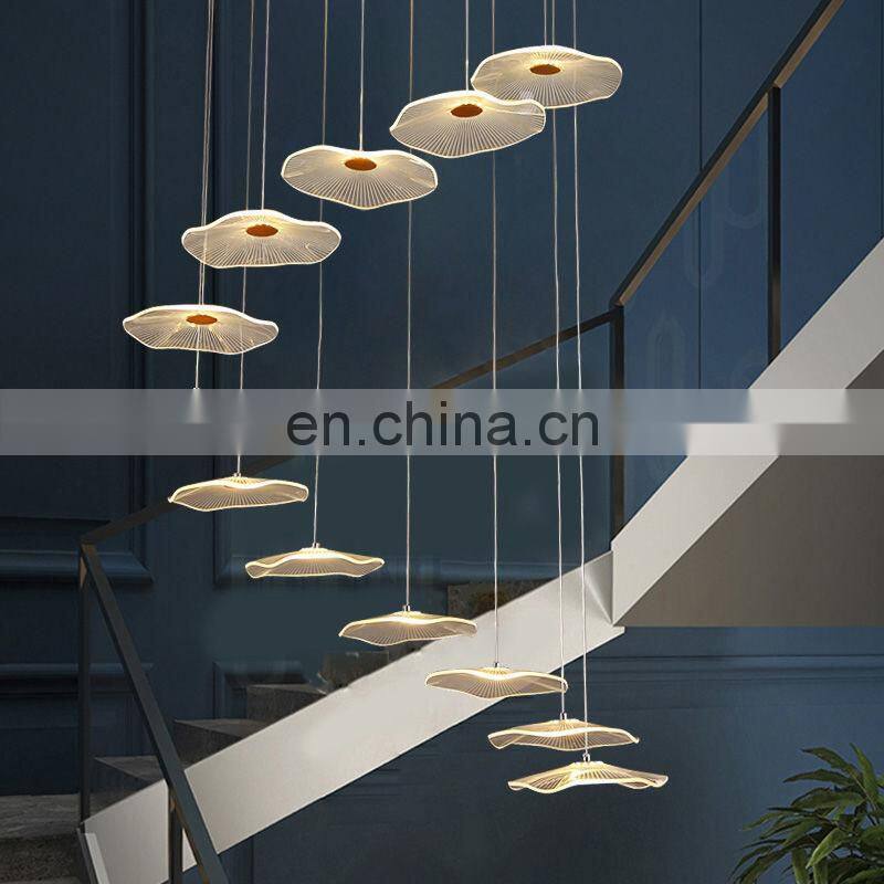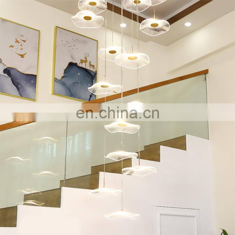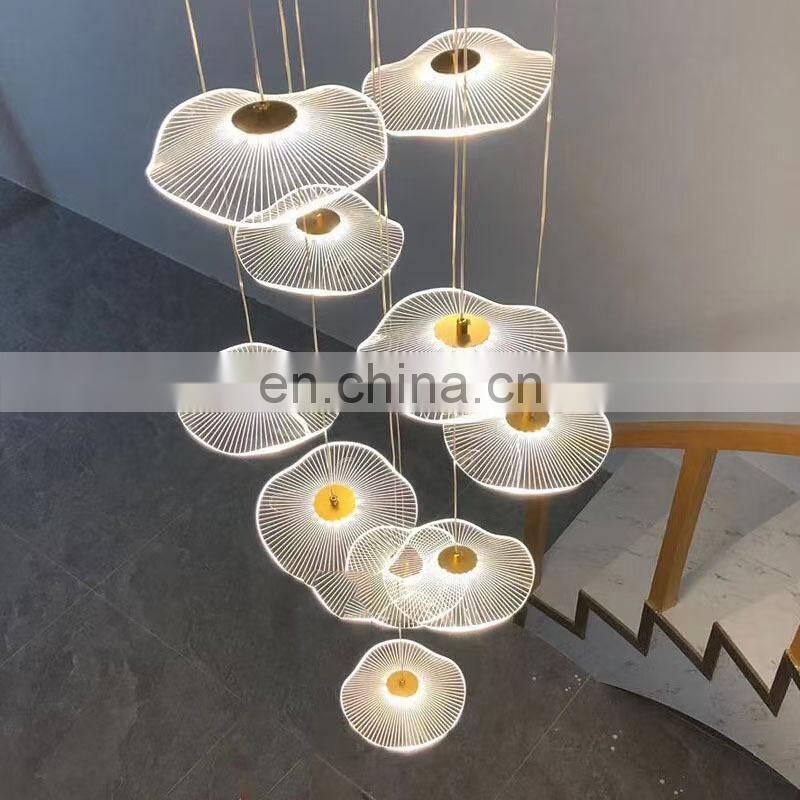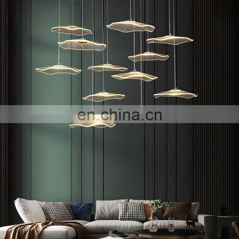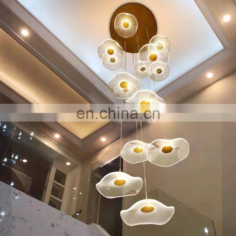 2022 Hot Sale Modern Decoration LED Pendant Lighting Villa Staircase Chandelier Gold Acrylic Lotus Leaf Ceiling Light