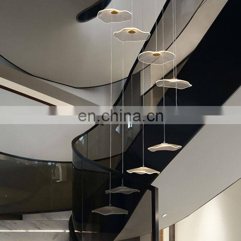 Modern Style Ceiling Lamp Acrylic Lotus Leaf Art Chandelier Staircase Villa Dining Room LED Pendant Light