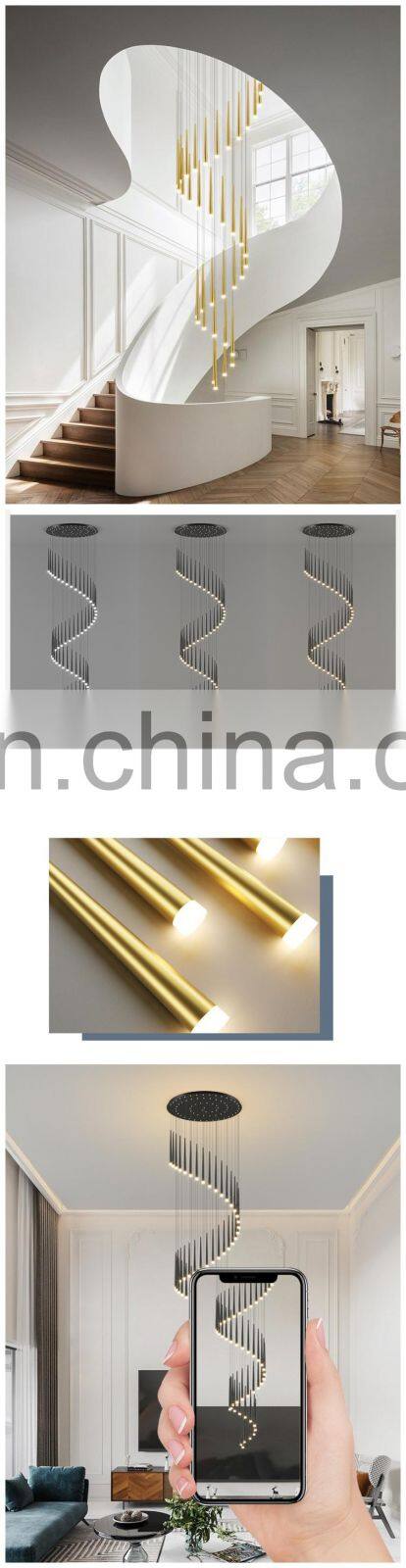 Gold Earrings Linear Stair Long Crystal Chandeliers Ceiling Luxury Pendant Light For Living Room