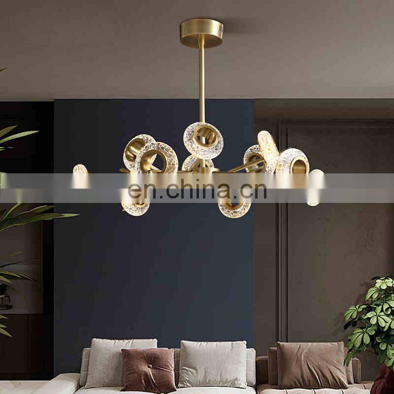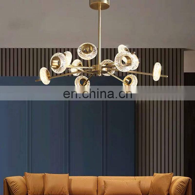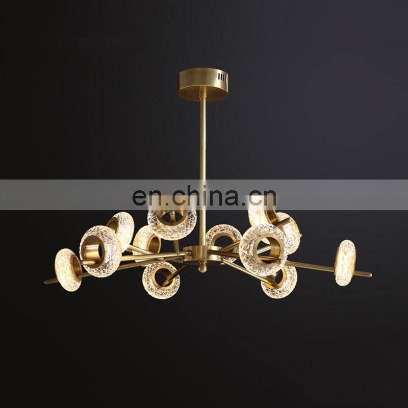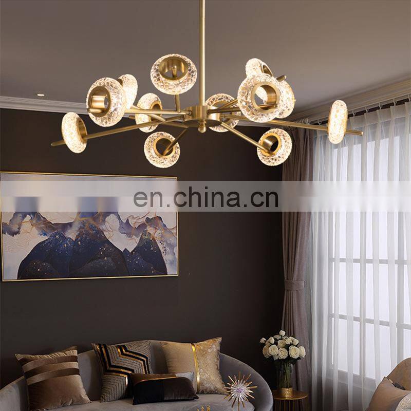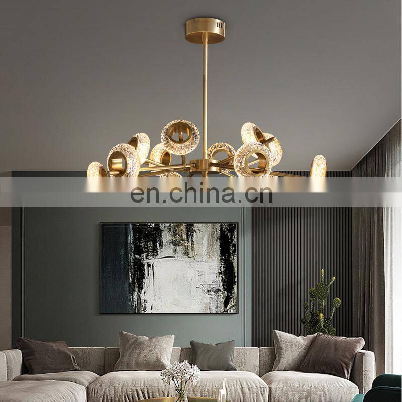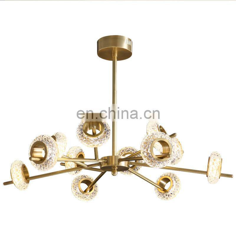 Copper Glass LED Chandelier For Living Room Modern Luxury Ceiling Hanging Lamp Hotel and Home Pendant Light