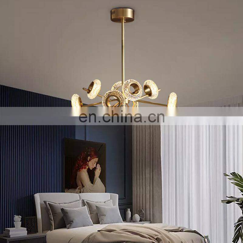 Modern LED Chandelier Copper Glass Luxury Pendant Lamp Simple Living Room Bedroom Ceiling Hanging Light