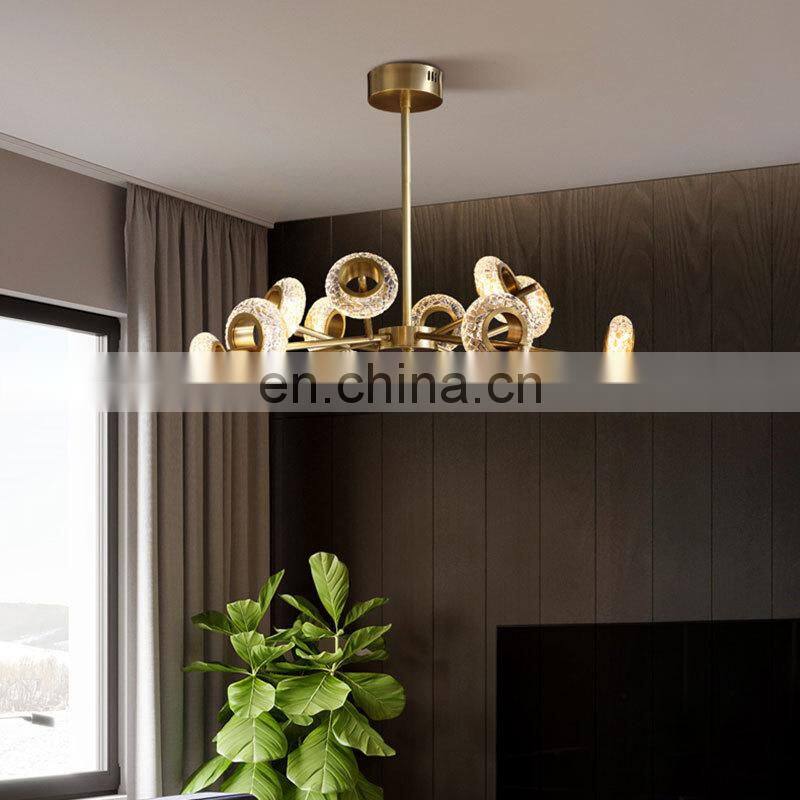 Nordic All-Copper LED Pendant Light Modern Dining Room Living Room Crystal Chandelier Luxury Magic Bean Molecular Ceiling Lamp