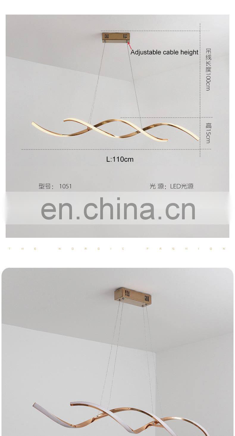 LED Pendant Light Modern Linear Wave Chandelier Ceiling Hanging Lamp for Bedroom Kitchen