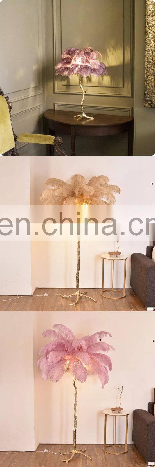 Home > Products > Ungrouped > Dance Wedding Party Standing Lamps For Living Room Creative Resin Copper Ostrich Feather Floor LED Lamp