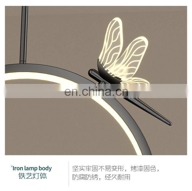 Postmodern Nordic Dragonfly Living Room Iron Acrylic Chandelier Art Dining Room Bedroom LED Pendant Light