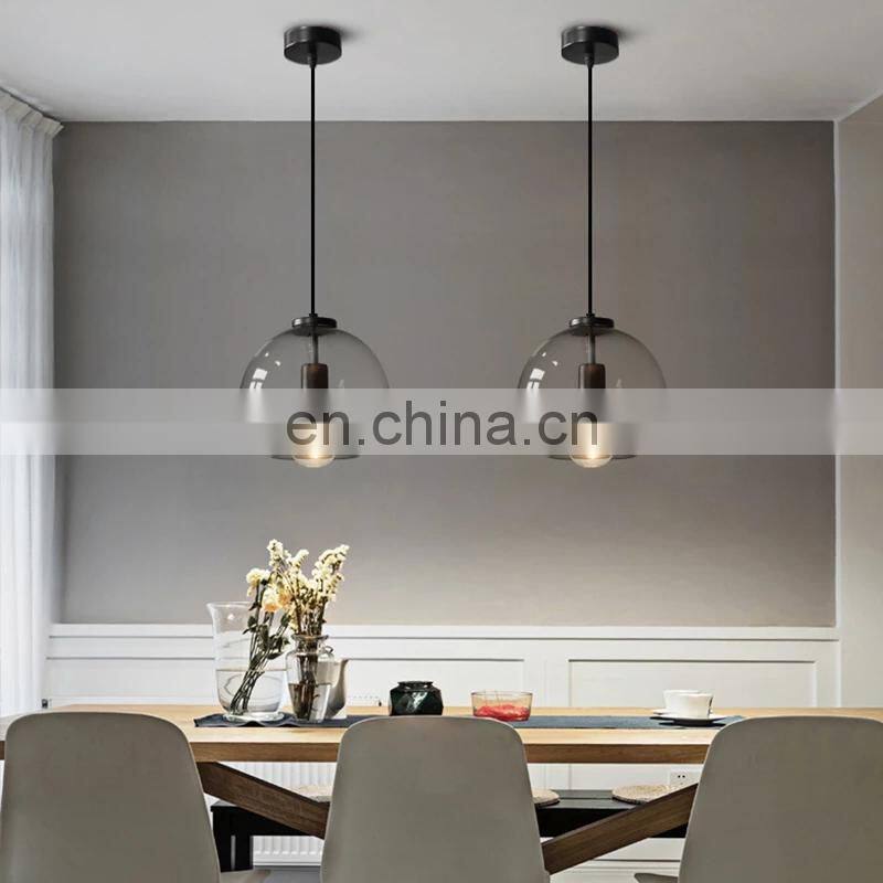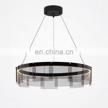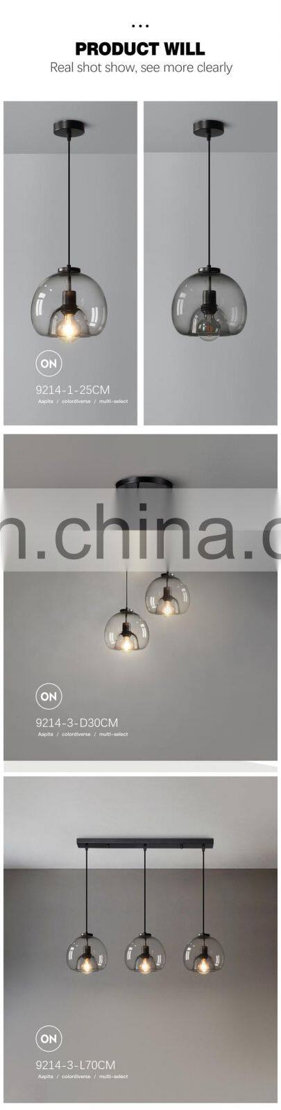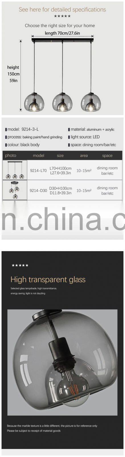 Modern E27 Black Chandelier Lamp For Living Room Gray Glass Postmodern Hanging LED Light
