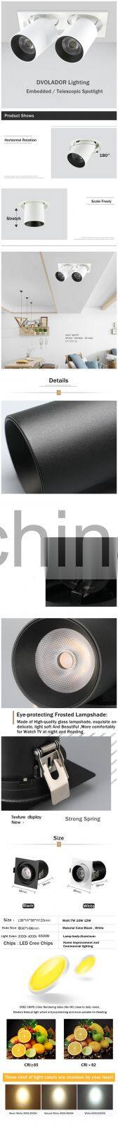 Double Heads Grill Light 10W Telescopic Stretched Recessed COB LED Downlight