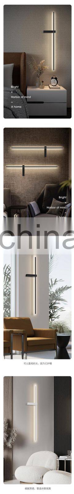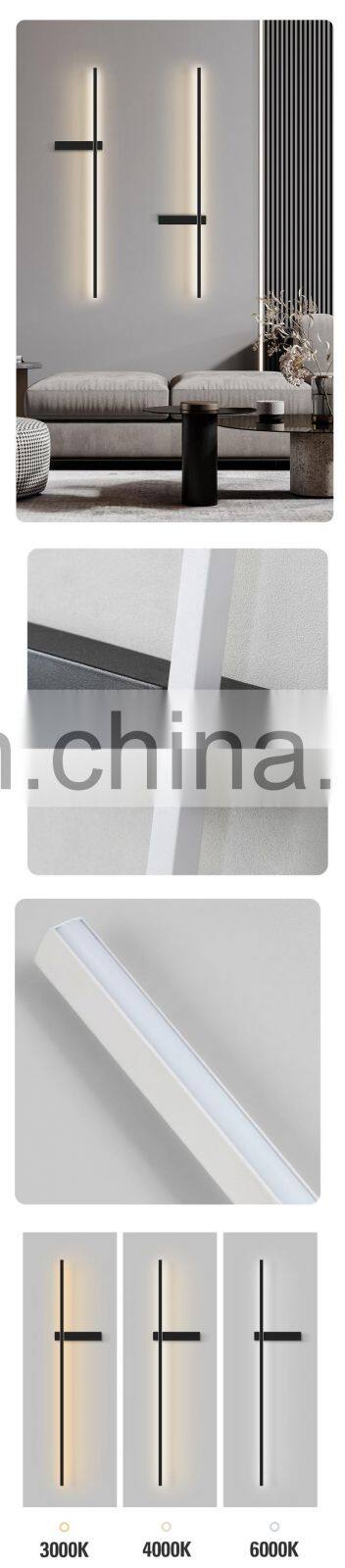 Italian Minimalist Black Full Copper Wall Lamp For Living Room Dining Room Bedroom Bedside Lighting Modern Line Wall Light
