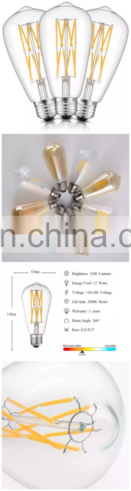 Dimmable Bulbs LED Glass Filament Lamp Indoor Vintage Edison Bulb Light