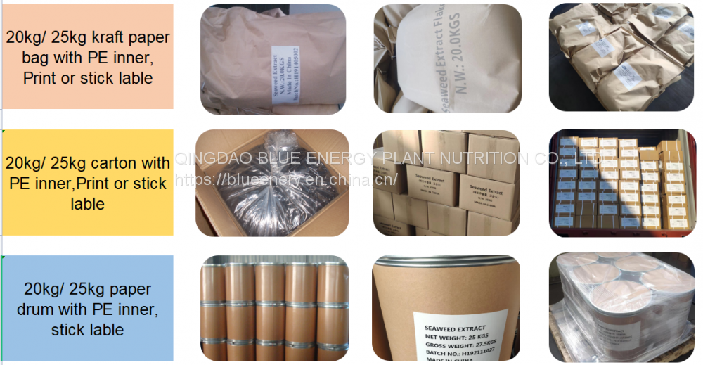 The series of Seaweed extract are extracted from marine seaweed through Biochemistry method contain cytokinin, oligomeric alginate potassium, betaine, mannitol, polysaccharide, iodine, microelement and alginic polyphenol etc.