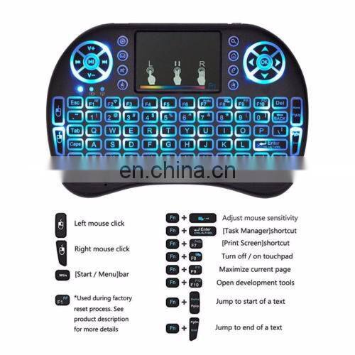 7 Colors Backlight I8 2.4GHz Mini LED Backlit Rechargeable Li-ion Battery (Backlit) KSW i8 Wireless Keyboard