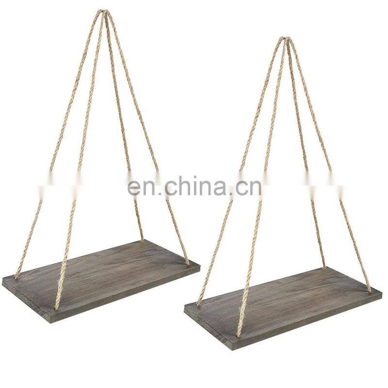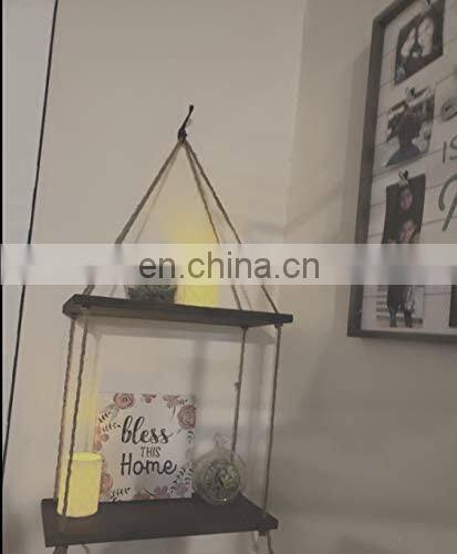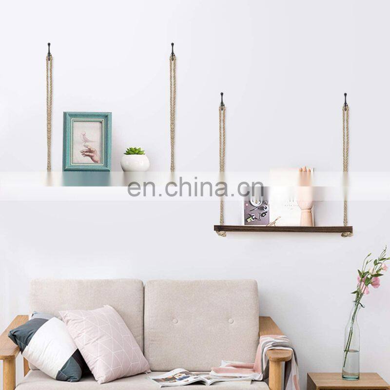 Hanging Shelves Bathroom and Kitchen Bedroom Living Room Brown Shelf Rope Wall Wood Floating 4 Hooks Rustic Hanging Shelf