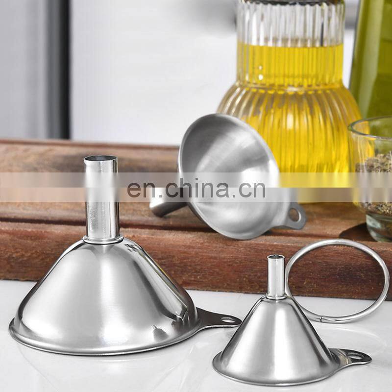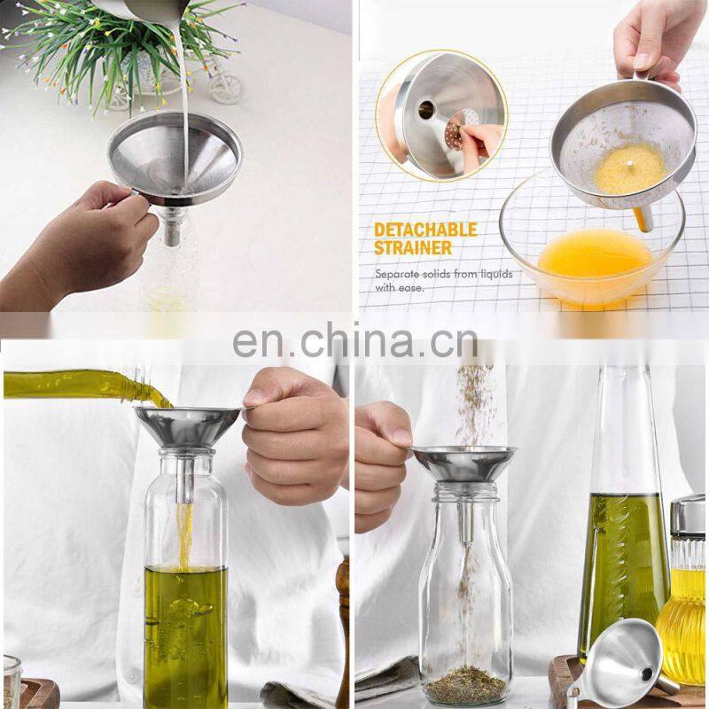 Silver Metal Cooking Funnel Food Stainless Steel Kitchen Funnel With Strainer Filter for Transferring Liquid Dry Ingredient