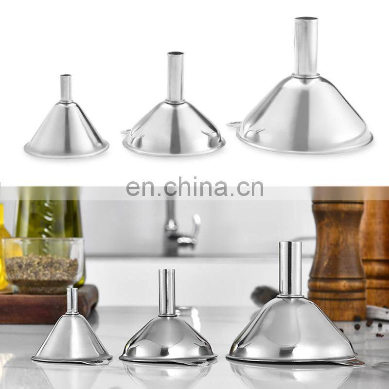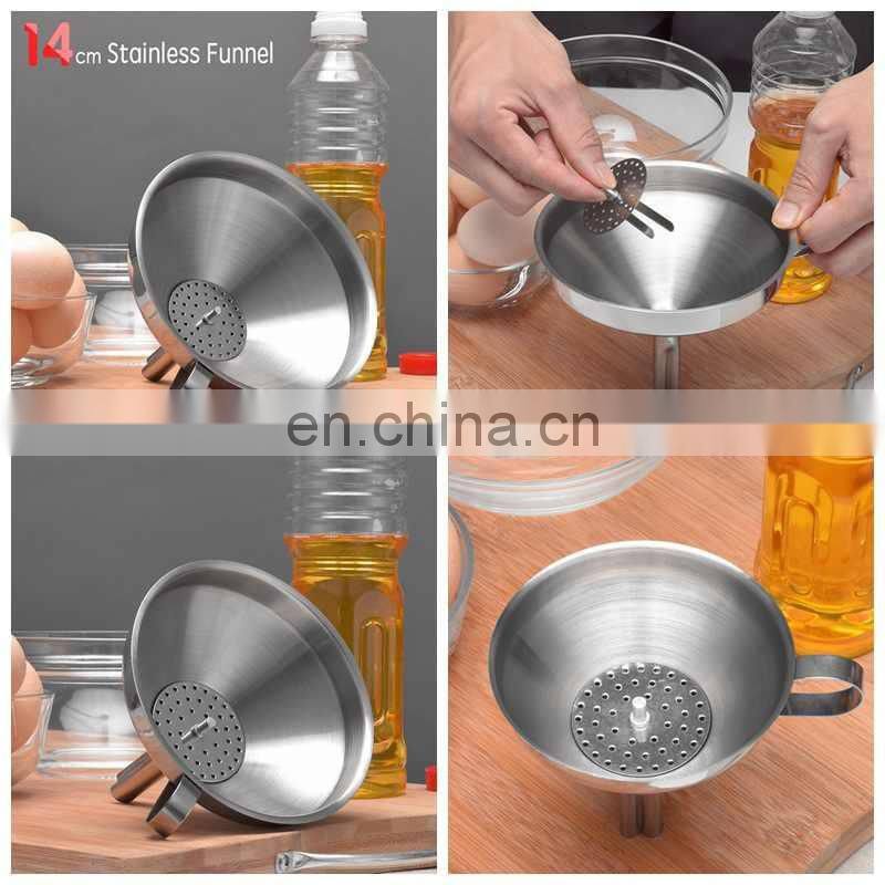 Product name | Silver Metal Cooking Funnel Food Stainless Steel Kitchen Funnel with Strainer Filter for Transferring Liquid Dry Ingredient | ||||