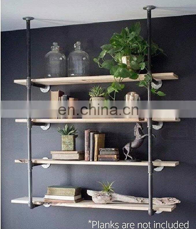 Industrial Retro Wall Mount Iron Pipe Shelf Hung Bracket Diy Storage Shelving Bookshelf