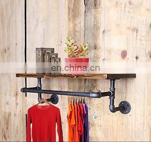 Industrial Display Wall Mounted Rustic Floating Clothing Rack Pipe Frame Shelves