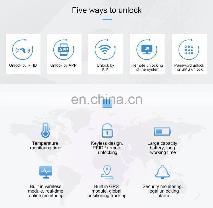 Feature | Real-time GPS positioning, GPRS remote tracking, lock, temperature, high security 6D sensor | ||||||