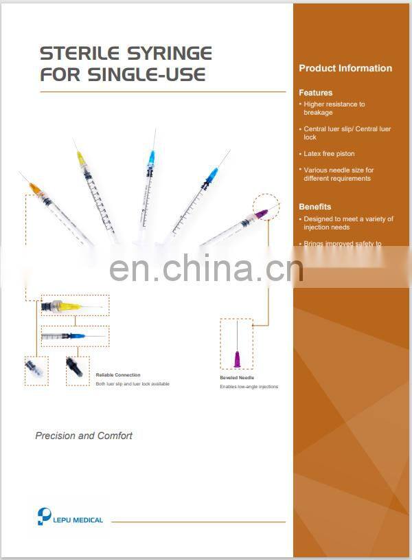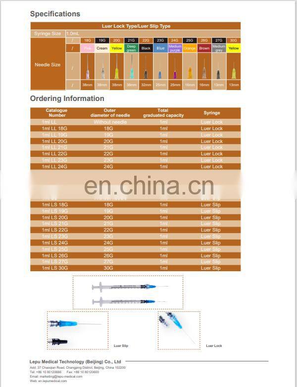 Home > Products > IVD Products > Lepu Medical Sterile Syringe for Single-use 1mL for Injection With CE
