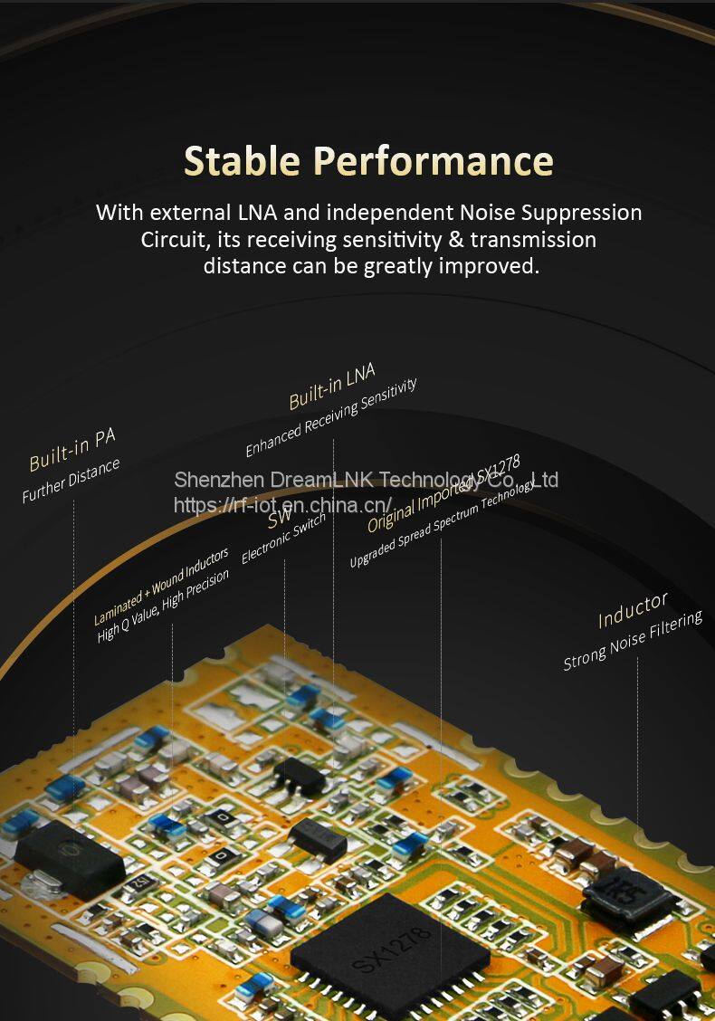 DreamLNK is a high-tech enterprise specializing in ISM band micropower wireless communication technology, providing different kinds of wireless modules and one-stop IoT solutions, including 433/868/915MHz wireless modules, 2.4G wireless Modules, FSK Transceiver Modules, LoRa Modules, Antennas, Remote Controls, and customized wireless RF solutions. Welcome to inquire (james@dreamlnk.com) !