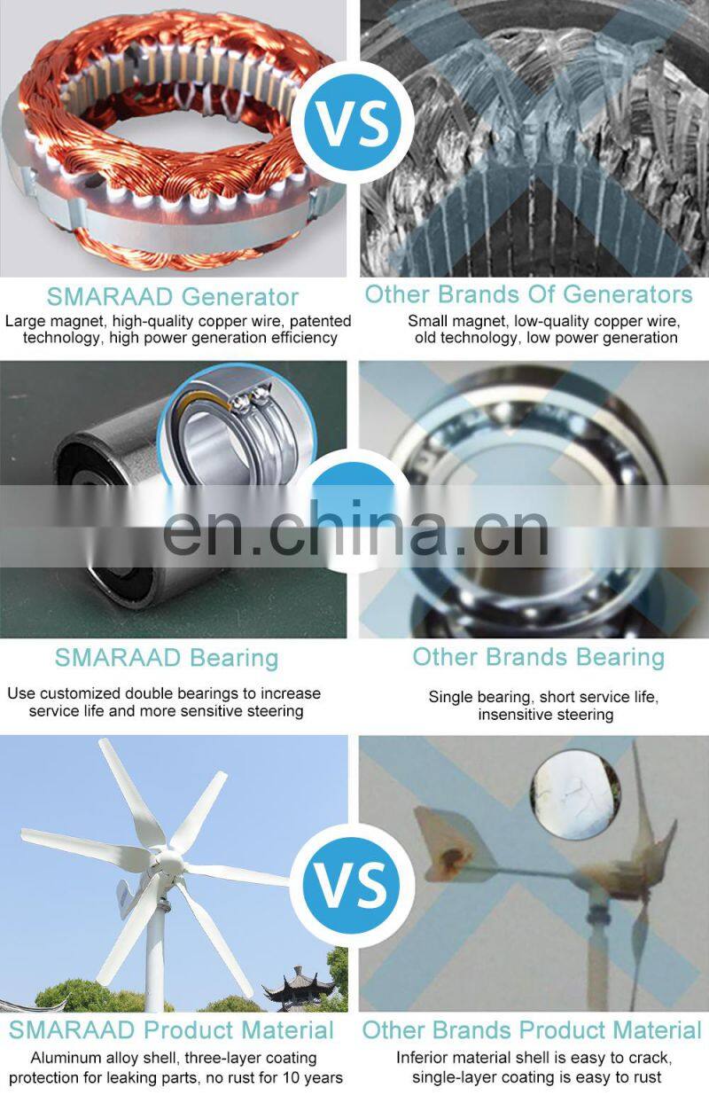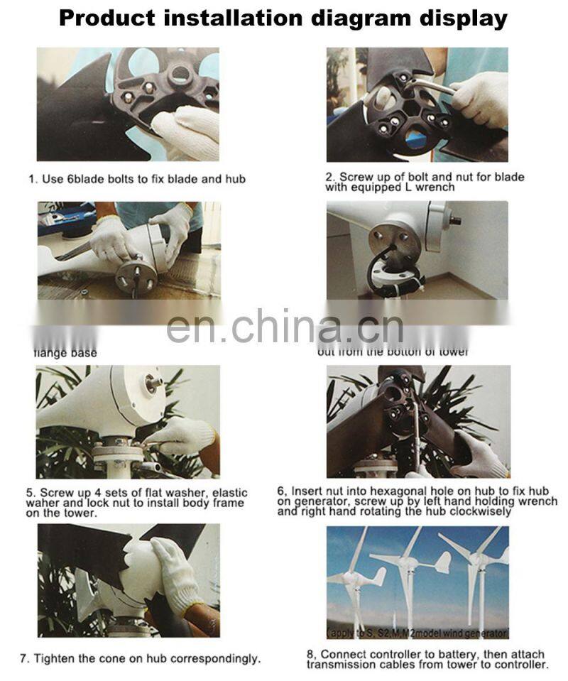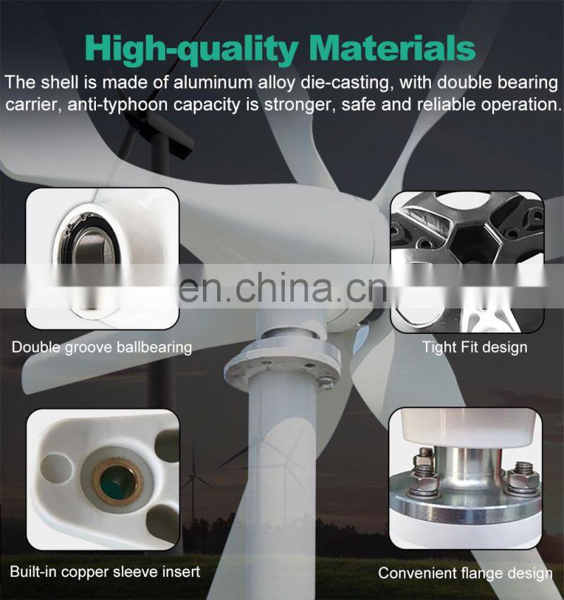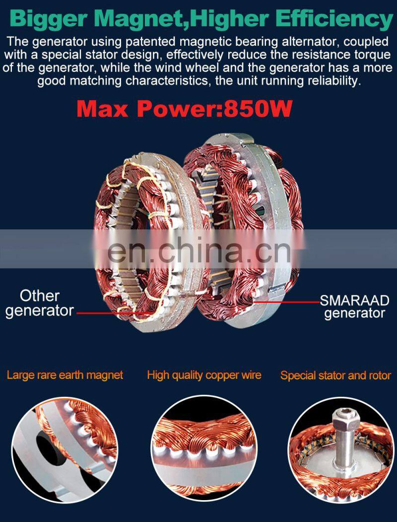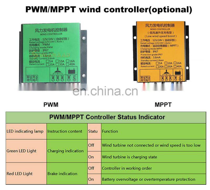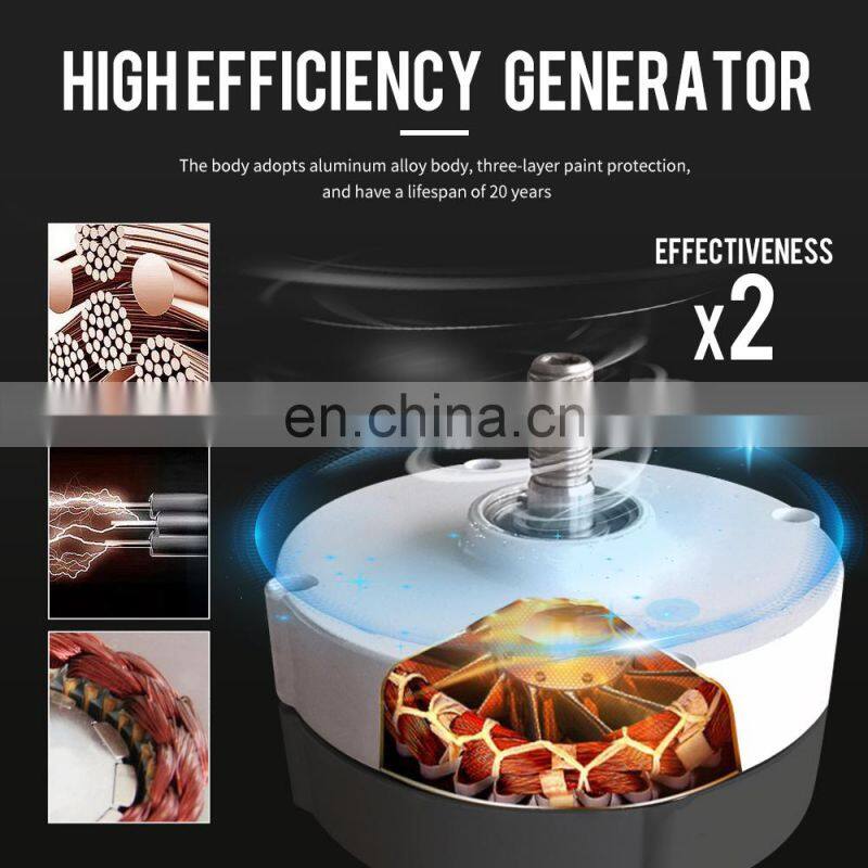 * 3. Generator: three-phase permanent magnet synchronous motor. Efficient and compact ac generator with high performance NdFeB permanent magnet. A fully integrated voltage regulator that automatically shuts down when the battery is fully charged. The fan is controlled by MPPT intelligent microprocessor, which can effectively adjust current and voltage