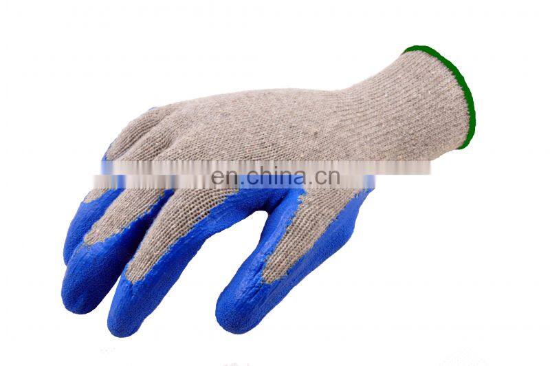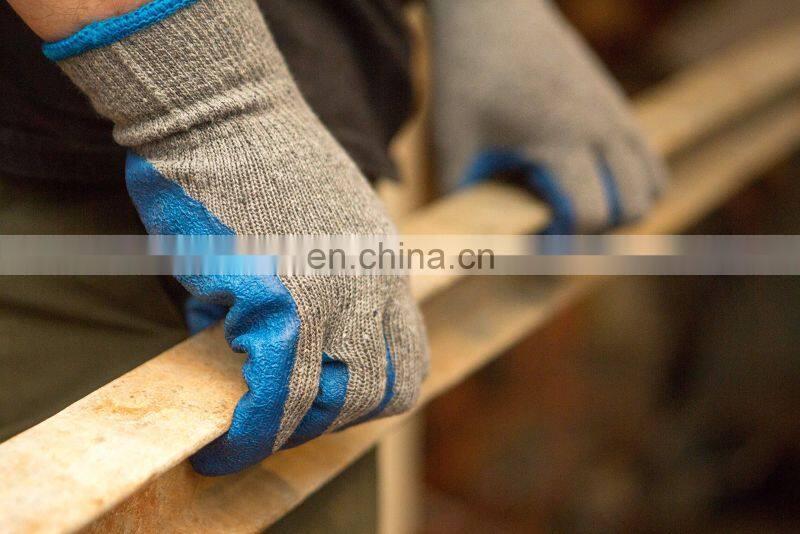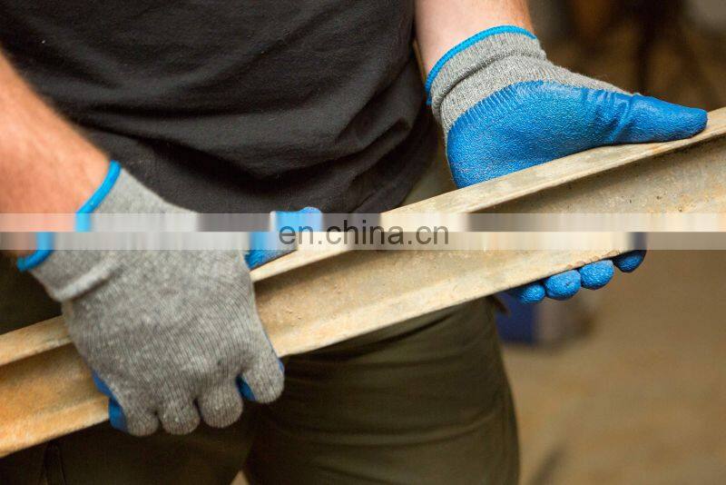 - Blue&white Polyester Thread 13 Gauge Knitted Deep Blue Foamed Wrinkled Latex Palm Coated Safety Work Gloves