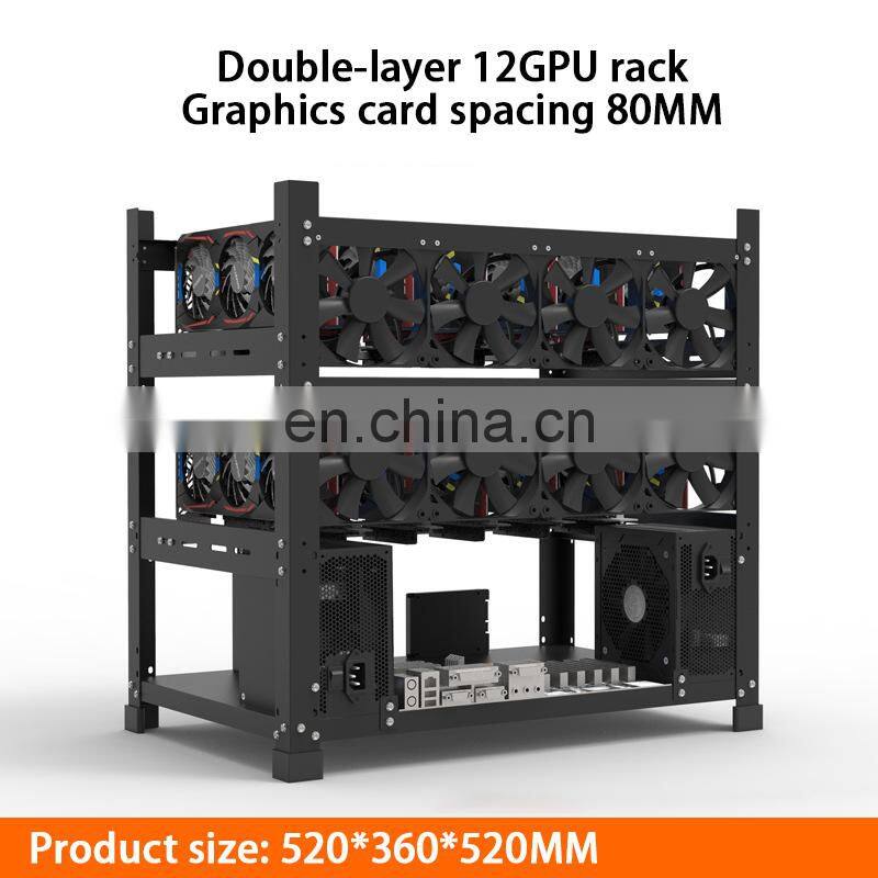 Open Air 12 GPU Rig Case Computer Chassis Dual Power For Graphic Card Rack Support Customization