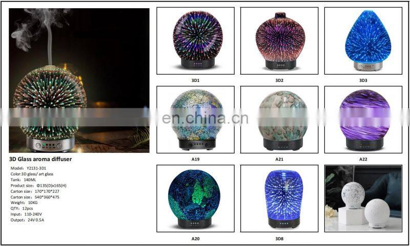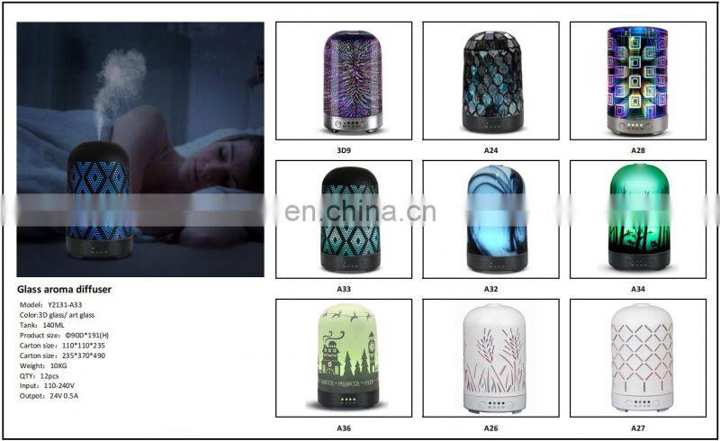 2021 140ml 3d Essential Oil Humidifier Electric Ultrasonic Aroma Glass Diffuser