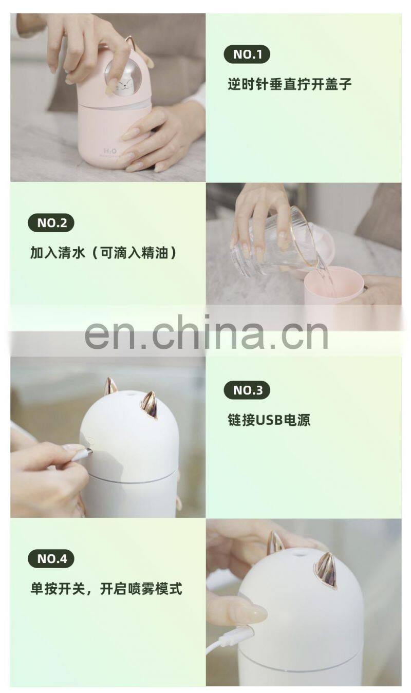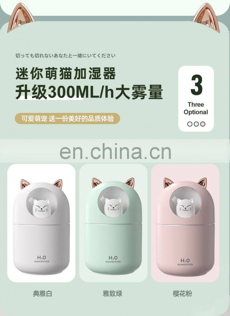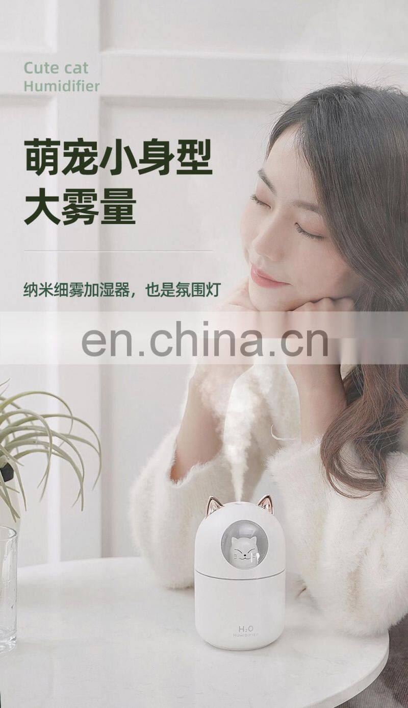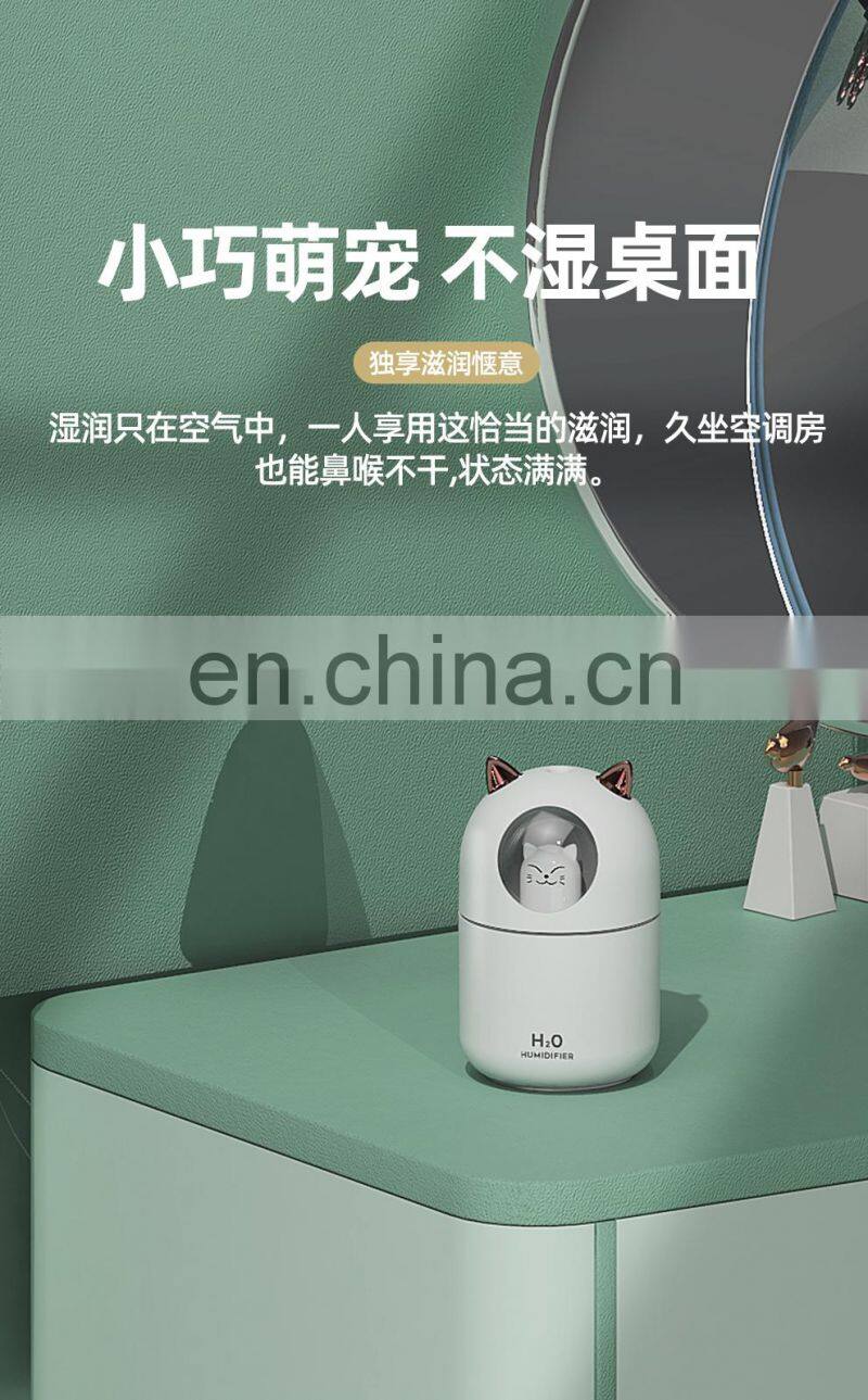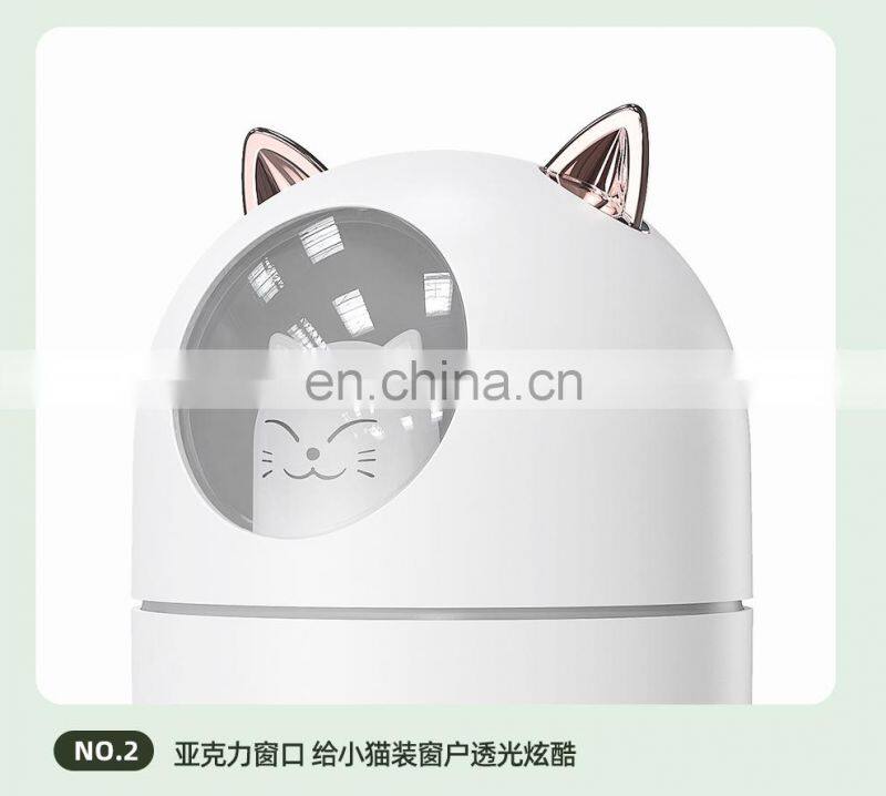 2021 Cute Cat New Design Cool Mist Humidifier 300ml Water With Led Lights