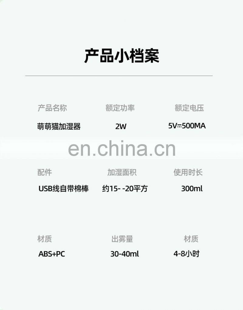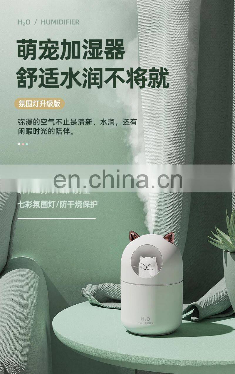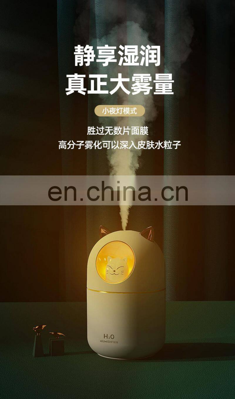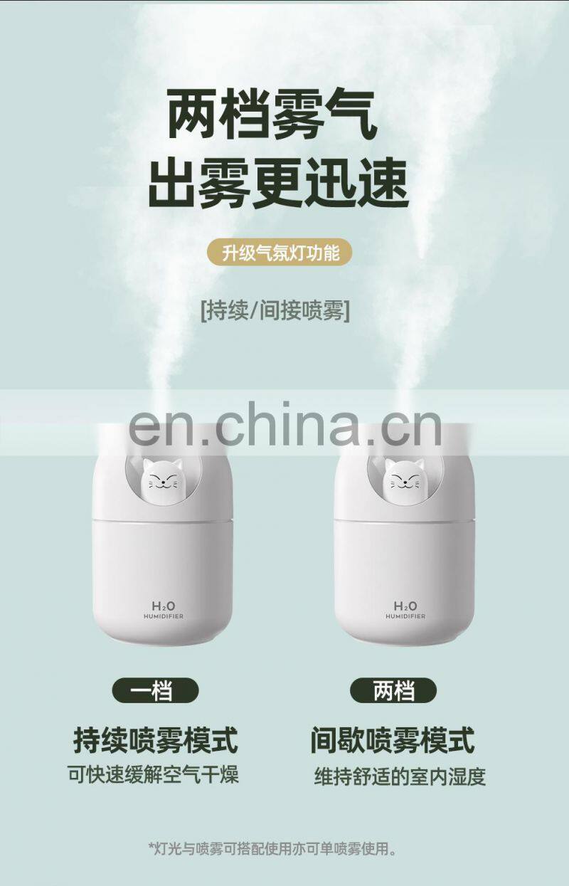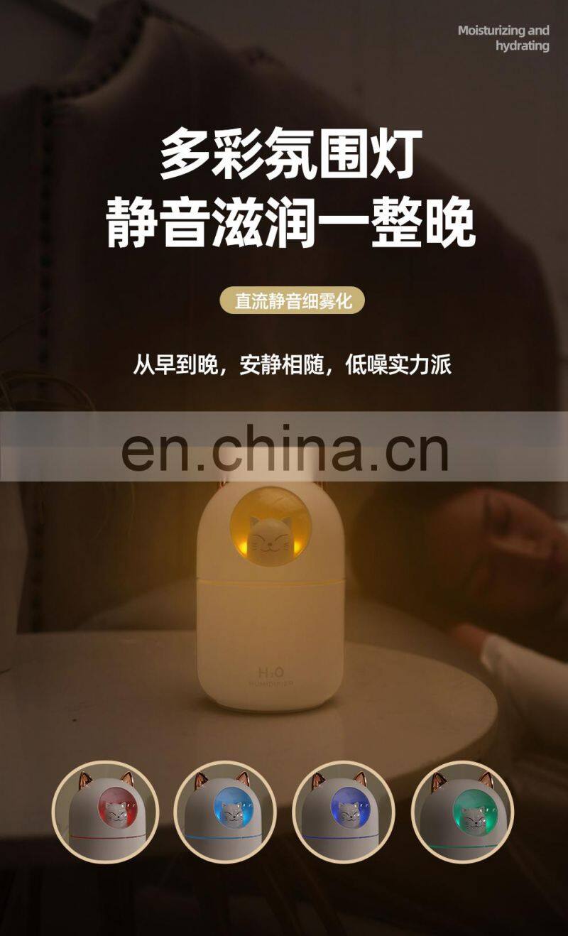 2021 Cute Cat New Design Cool Mist Humidifier 300ml Water With Led Lights
