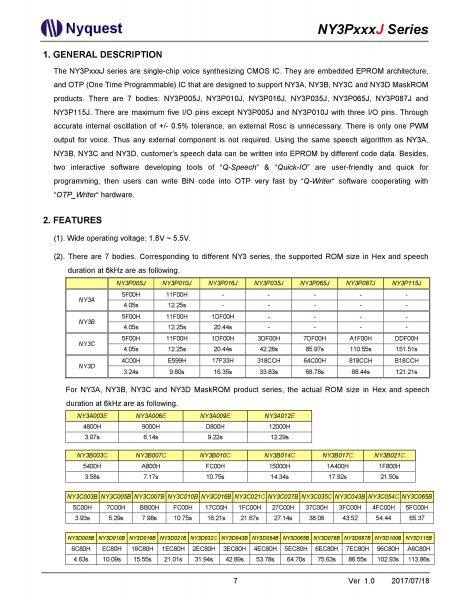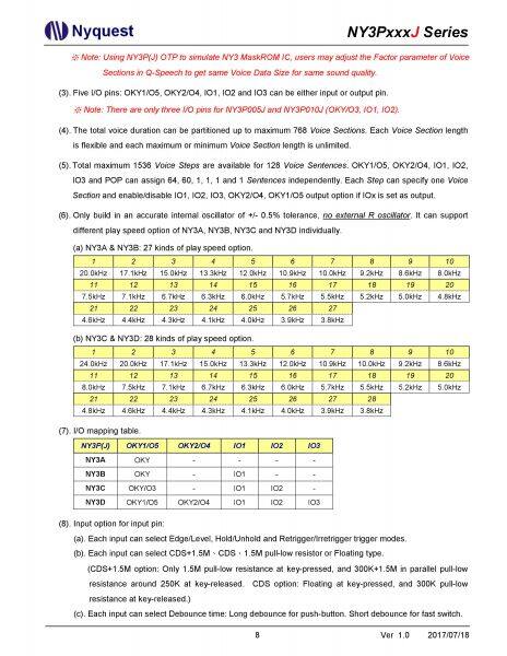 NY3P065JS8 NY3P087JS8 NY3P115JS8 SOP8 Nyquest Voice IC Melody IC Speech IC OTP