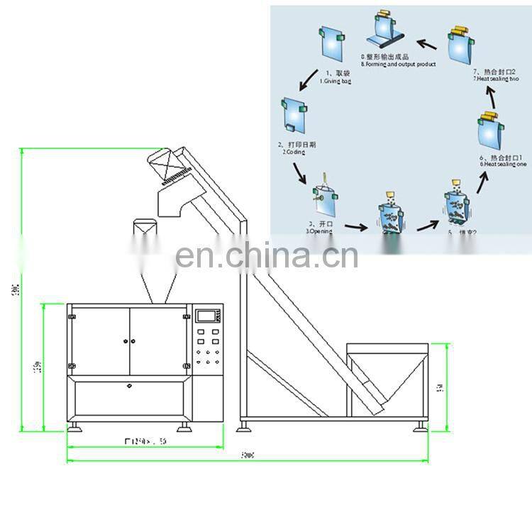 (1) on the bag (2) to print production date (3) open a bag (4) cutting feed those heat sealing the 2 1 (5) 7 heat sealing 2 sets and output |