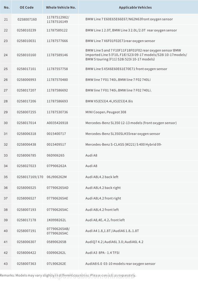 | 22 | 258010239 | 11787589122 | BMW 1 Series 2.0T, BMW 3 Series 2.0L 2.0T Rear Oxygen Sensor |
