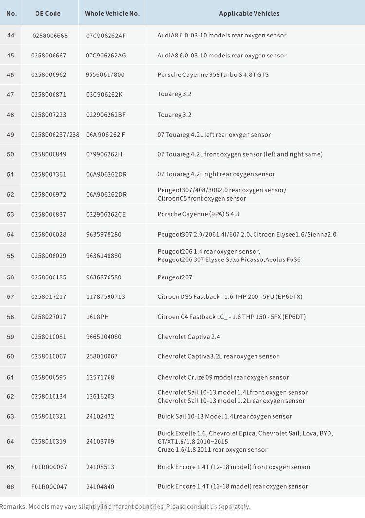 | 49 | 0258006237/238 | 06A 906 262 F | 07 Touareg 4.2L Left Rear Oxygen Sensor |