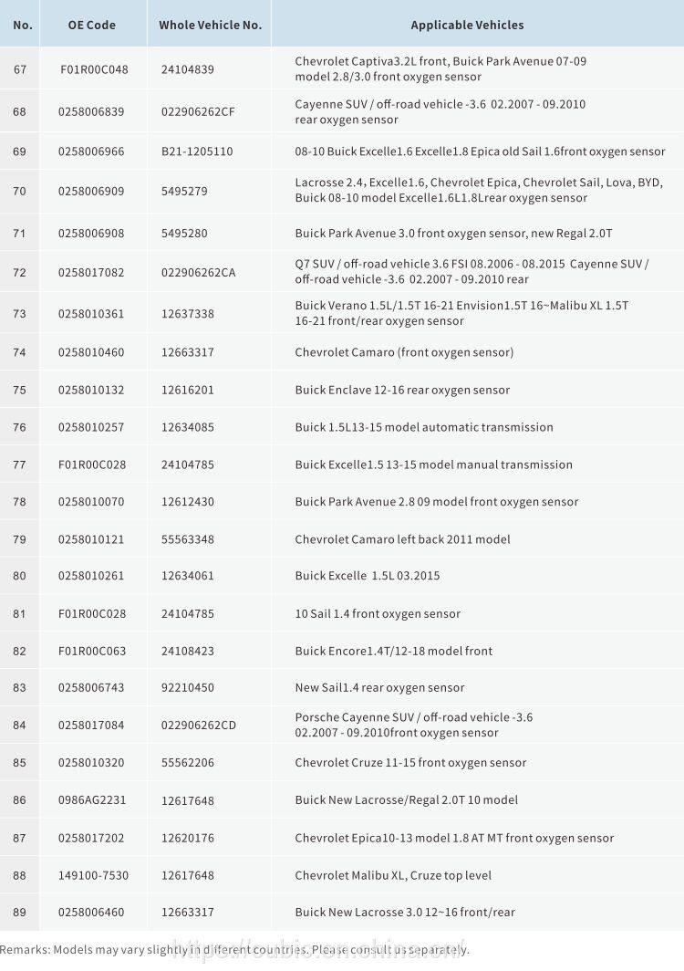 | No. | OE Code | Whole Vehicle No. | Applicable Vehicles |