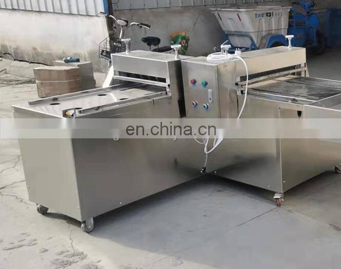 This machine is mainly used for the molding of snack foods such as peanut candy, peanut crisps, chima crisps, etc. It has continuous feeding pre-compression and automatic molding by multi-roll rollers. The product surface is flat, the density is moderate, and the thickness is uniform. It is truly automated and intelligent; the machine adopts frequency conversion technology, and each action is controlled by PLC to coordinate and accurately. Adjust the speed and thickness for different products and processes to achieve excellent product molding results.