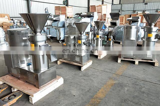 This peanut butter making machine works by the cutting, grinding, and high-speed mixing. It grinds on the relative movement of the disc-shaped bevel. One rotates with high speed, the static one will make the material get great shear force and friction, to achieve effective grinding, emulsification, crushing, dispersion and homogenization for a fine ultrafine particles smashing effect.