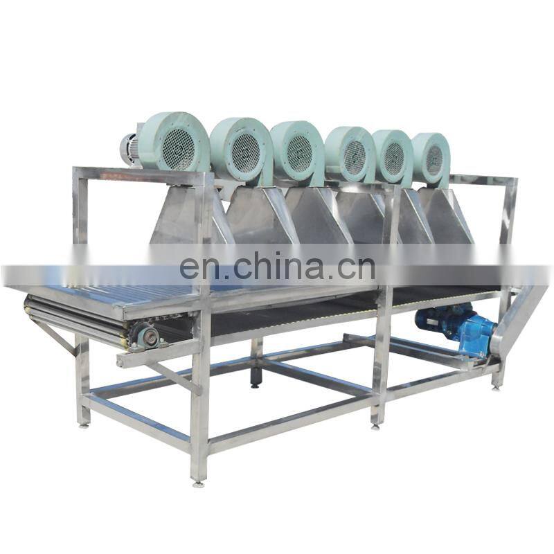 This type of air dryer is used for draining and air-drying cleaned fruits and vegetables. The bottom has a vibration draining function and collects dirty water for unified treatment. Fans can be increased or decreased according to customer needs. And you can add mesh belts to prevent vegetables from being blown out by strong winds.