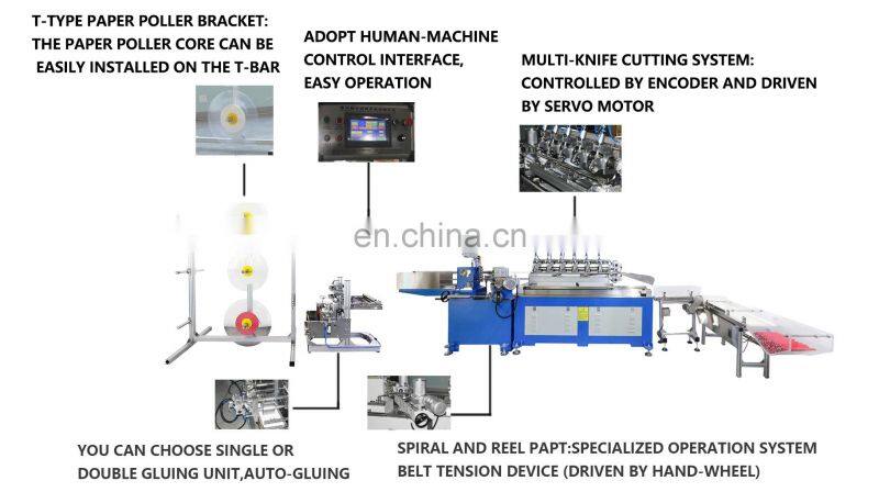 5. Multi-knife System in-line cutting unit controlled by encoder .,cutting final paper tube directly ,Servo motor control cutting system.