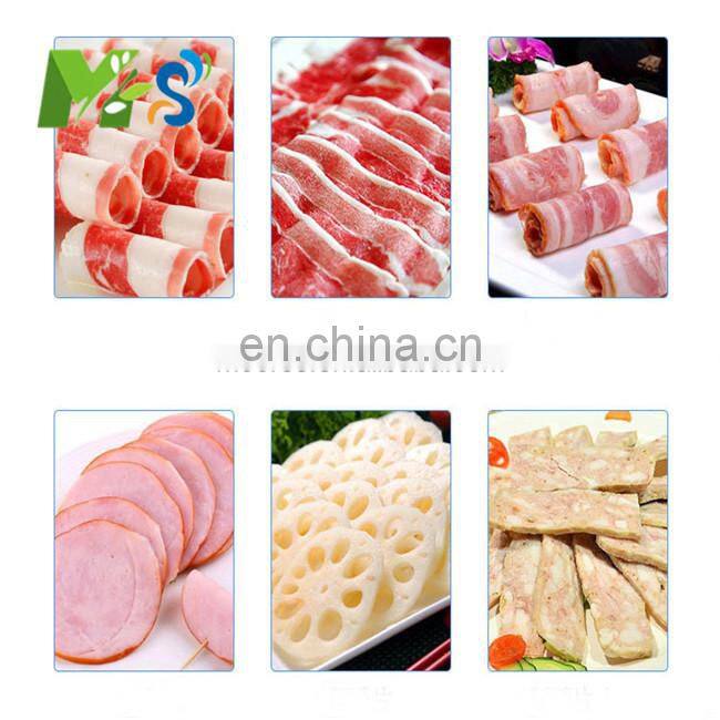 The meat is cut horizontally in multiple slices and applied to the cutting processing of fresh raw material slices such as pork, beef, chicken, and duck.