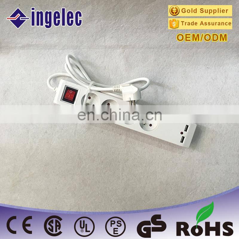 Usb Schuko Electrical Socket With General Switch and 1.5m,3m or 5m Length Cable