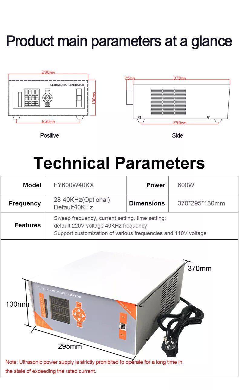 | FY600W40KX | 600 | 370*295*130 | 40KHz |