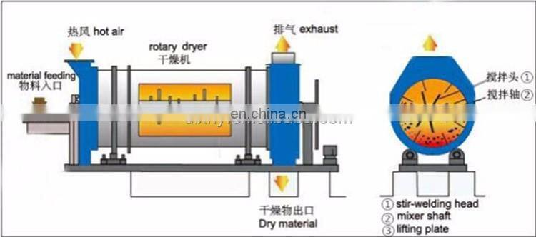 5.The internal structure of the dryer use various efficient flight patterns. It can efficiency adjust the feed and heat distribution. The high heat efficiency, waste are exhausted temperature is lower than 50 ℃.