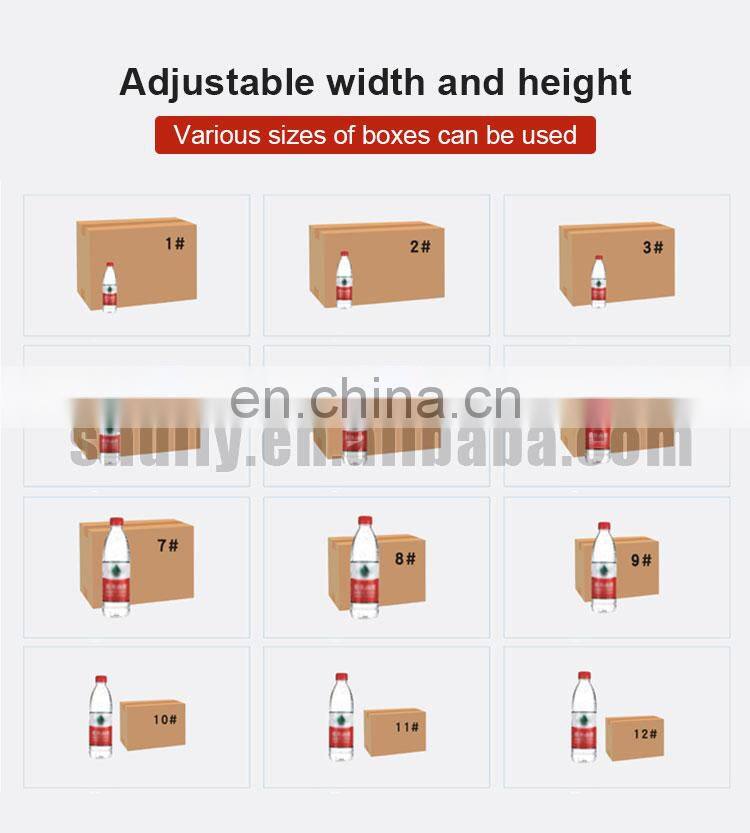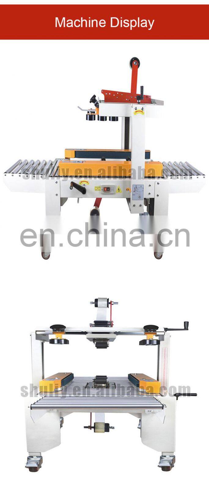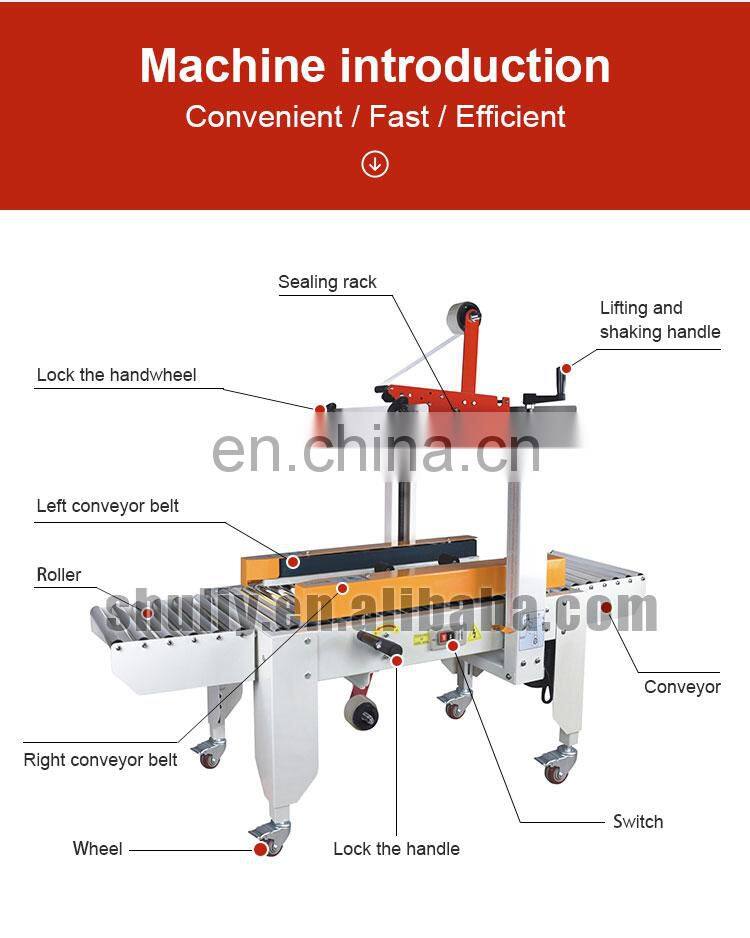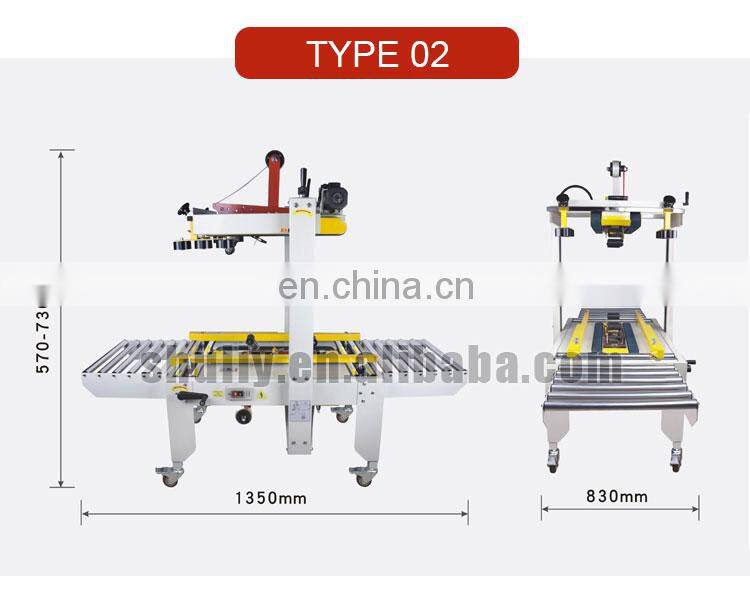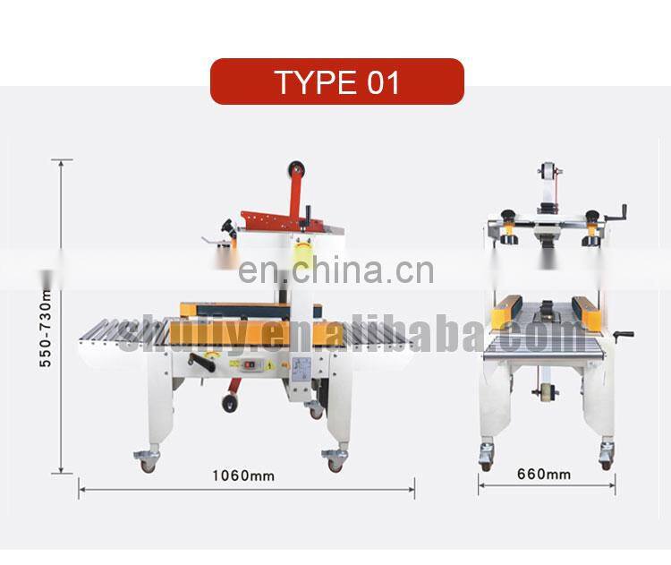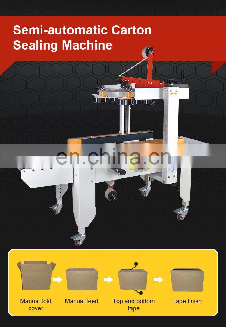 4. Adjust sealing height and width by hand according to the size of carton, then put carton on worktable, and carton will be