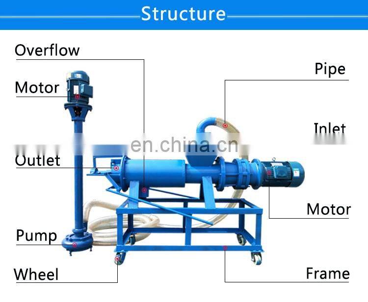 1.The separation speed of the manure dewatering machine of slag liquid is fast, the moisture content of the separated slag is between 35-65%, the slag amount and water content can be adjusted, and it can be applied to different feeds (such as grass and concentrate) for transportation. Its solid content is very suitable as a raw material for fish feed and organic fertilizer.
