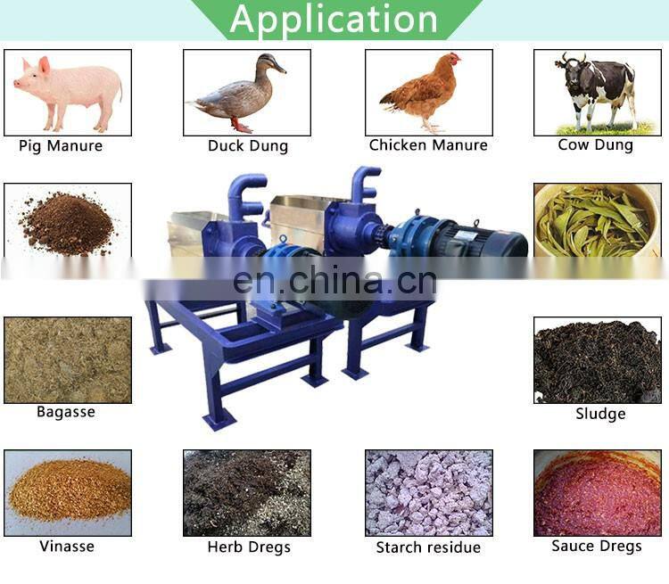 4.The manure dewatering machine can be widely used as a slag separation of chicken, cattle, horse and various intensive farms for high-concentration organic sewage such as animal manure, distiller's grains, dregs, starch residue, sauce residue and slaughterhouse.