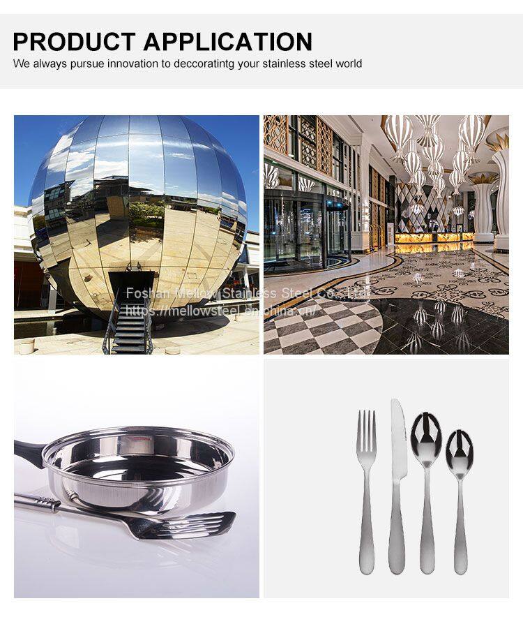 Mellow Steel SUS 201/304/430 BA 2B HL 8K NO.4 Stainless Steel Sheet