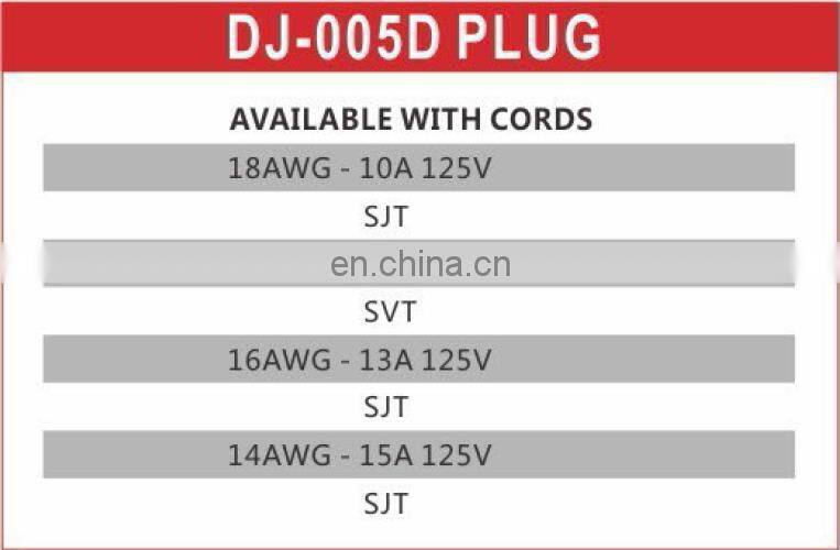 DJ005D AC Power Cord Plug NEMA 1-15P 2 Pole 2 Wire Male Plug Vacuum Cleaner Power Cords Plug