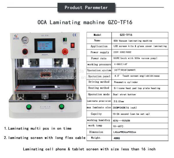 12.9 Flat Liquid Crystal Laminating Machine GZC-TF16 Factory 2024 New Product 16-inch Vacuum Laminating Machine